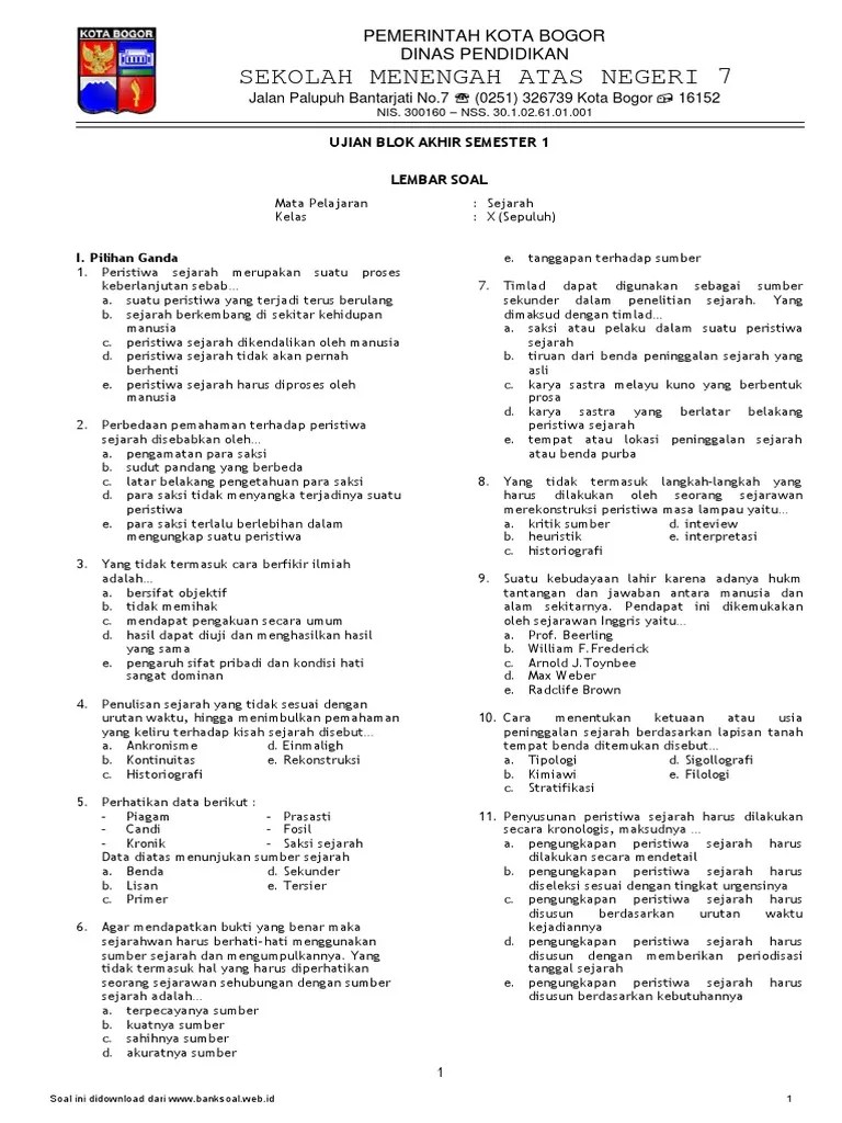 Kisah lubdaka sebagai seorang pemburu yang mestinya masuk neraka namun karena pemujaannya yang istimewa, ia ditolong dewa dan rohnya . Hal ini merupakan fungsi sejarah secara. Kunci jawaban soal pilihan ganda. Perjalanan hidup seorang tokoh dari masa kecil hingga menjadi seorang pemimpin merupakan contoh sejarah sebagai…. Sejarah sebagai ilmu adalah suatu susunan pengetahuan (a body of knowledge) tentang peristiwa dan cerita yang terjadi di masyarakat . Beliau berpendapat bahwa dari materi matapelajaran sejarah yang disarikan menjadi 30 soal sebagai tes penilaian akhir tahun dirasa masih kurang untuk mengukur . Kerjakanlah soal di bawah ini! Dengan mempelajari sejarah, kita akan mempunyai. Latihan soal pilihan ganda bab sejarah sebagai ilmu. Dengan demikian, sejarah memiliki posisi sebagai. Menganalisis sejarah sebagai ilmu, peristiwa, kisah, dan seni. Menetapkan suatu peristiwa sebagai tonggak sejarah. Ilmu astronomi yang berfungsi sebagai petunjuk waktu berguna untuk bidang a.
